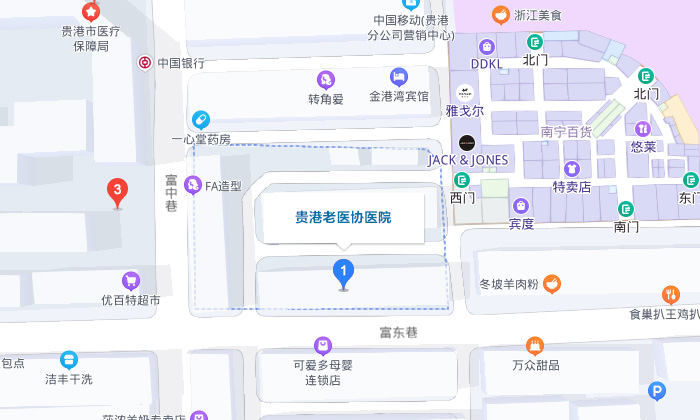 医院地址:贵港市港北区金港大道富士新城(市劳动局旁)